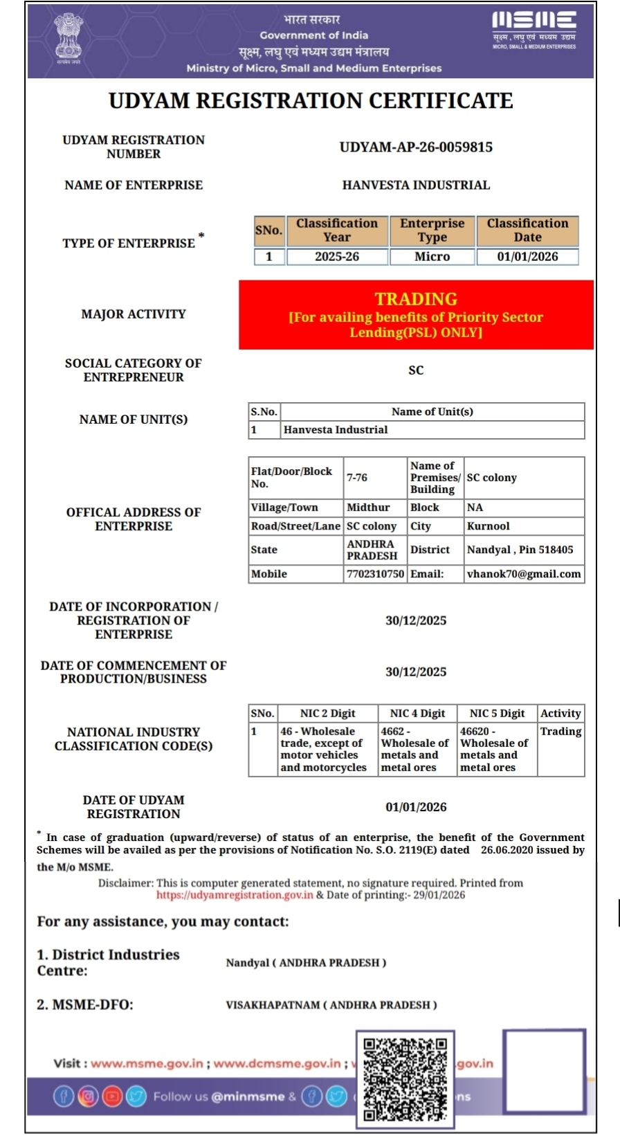 Hanvesta Industrial is an India-based global trading house engaged in bulk procurement and export of non-ferrous metals.